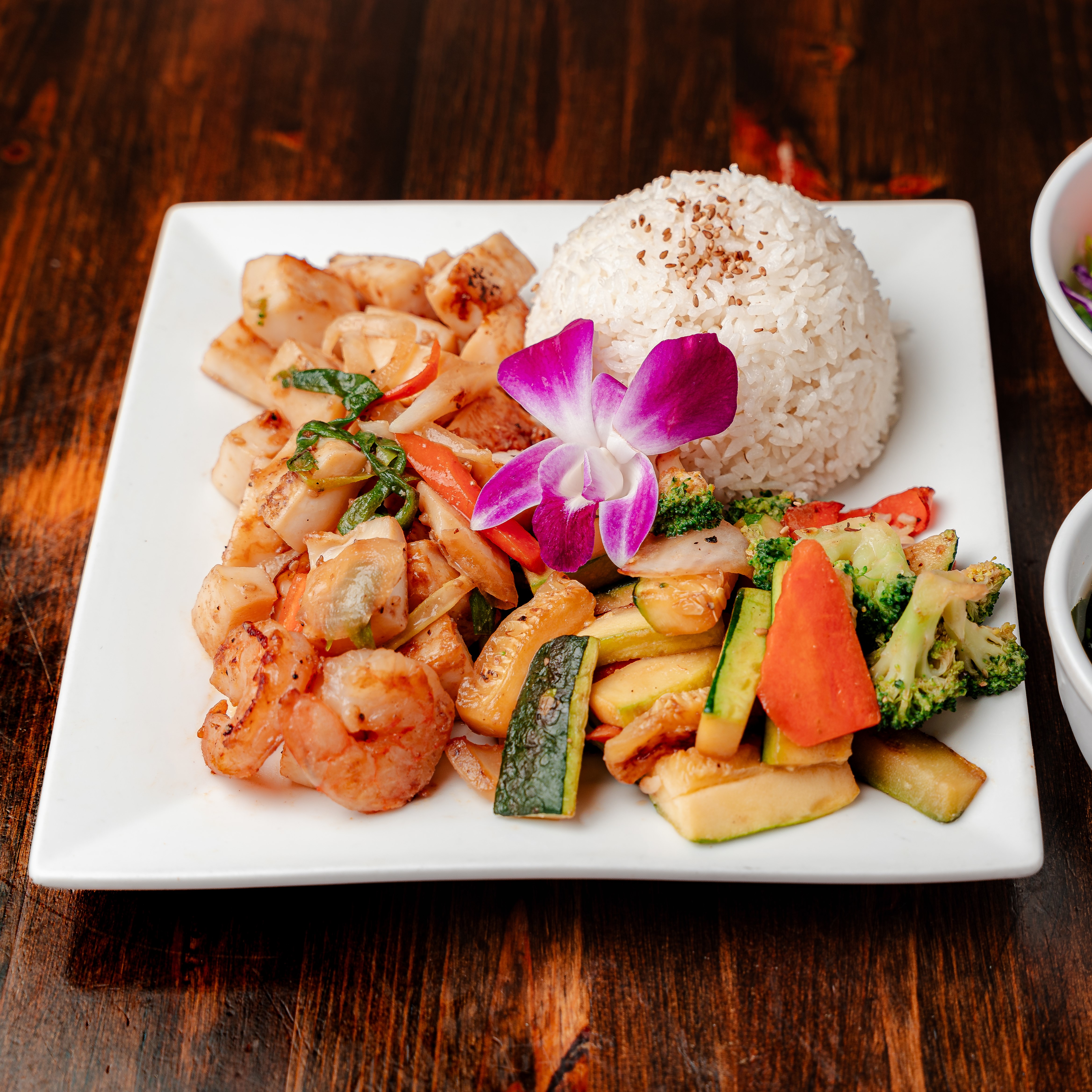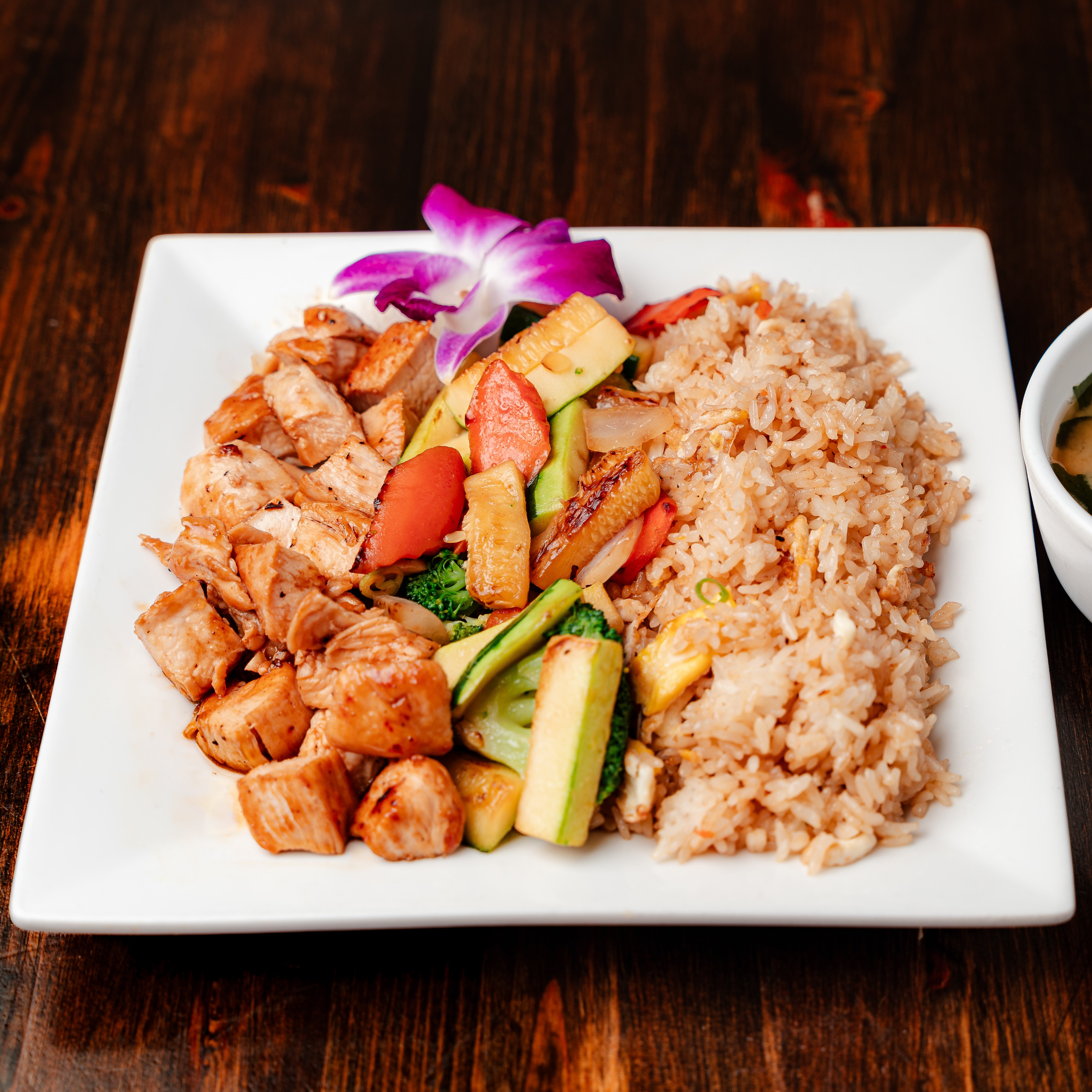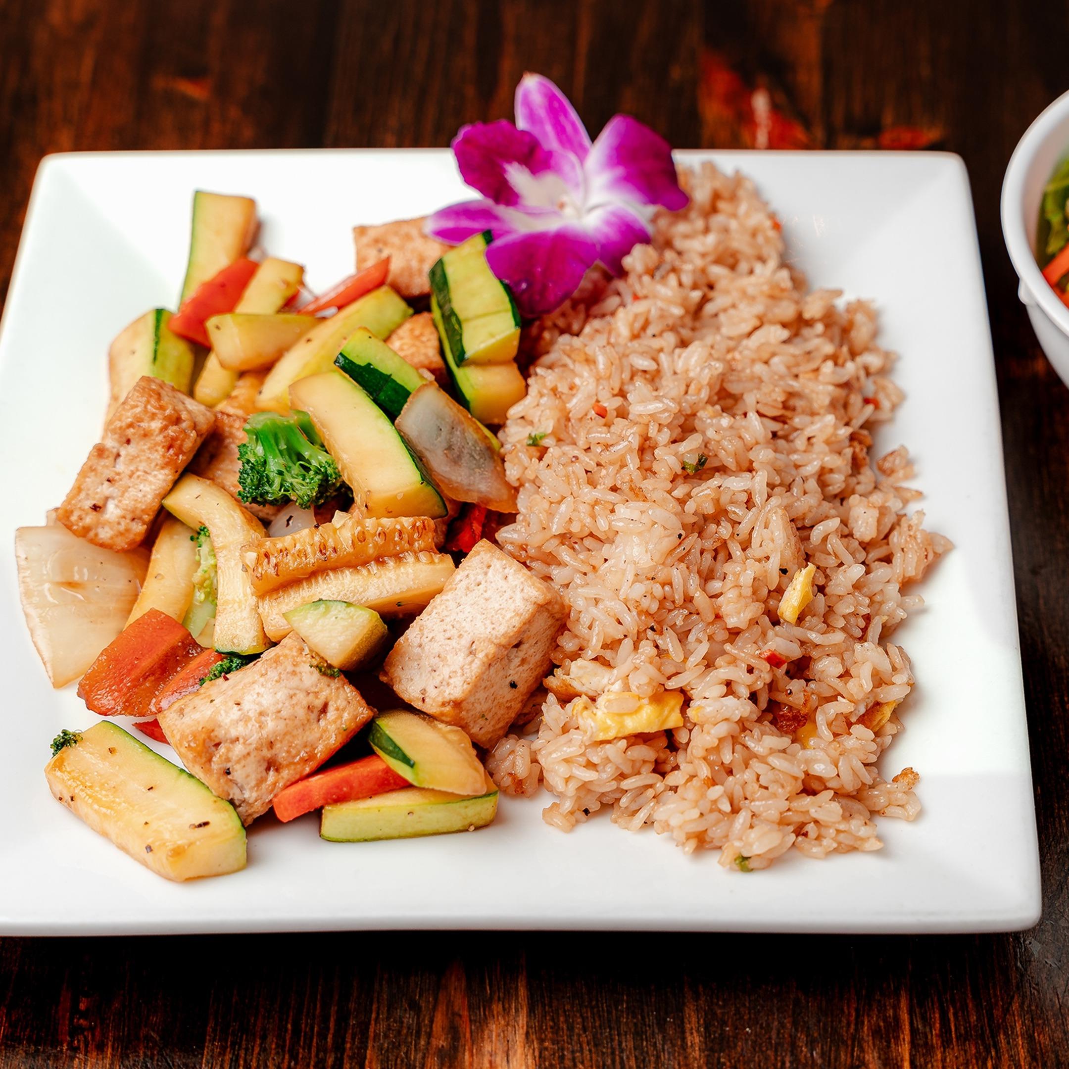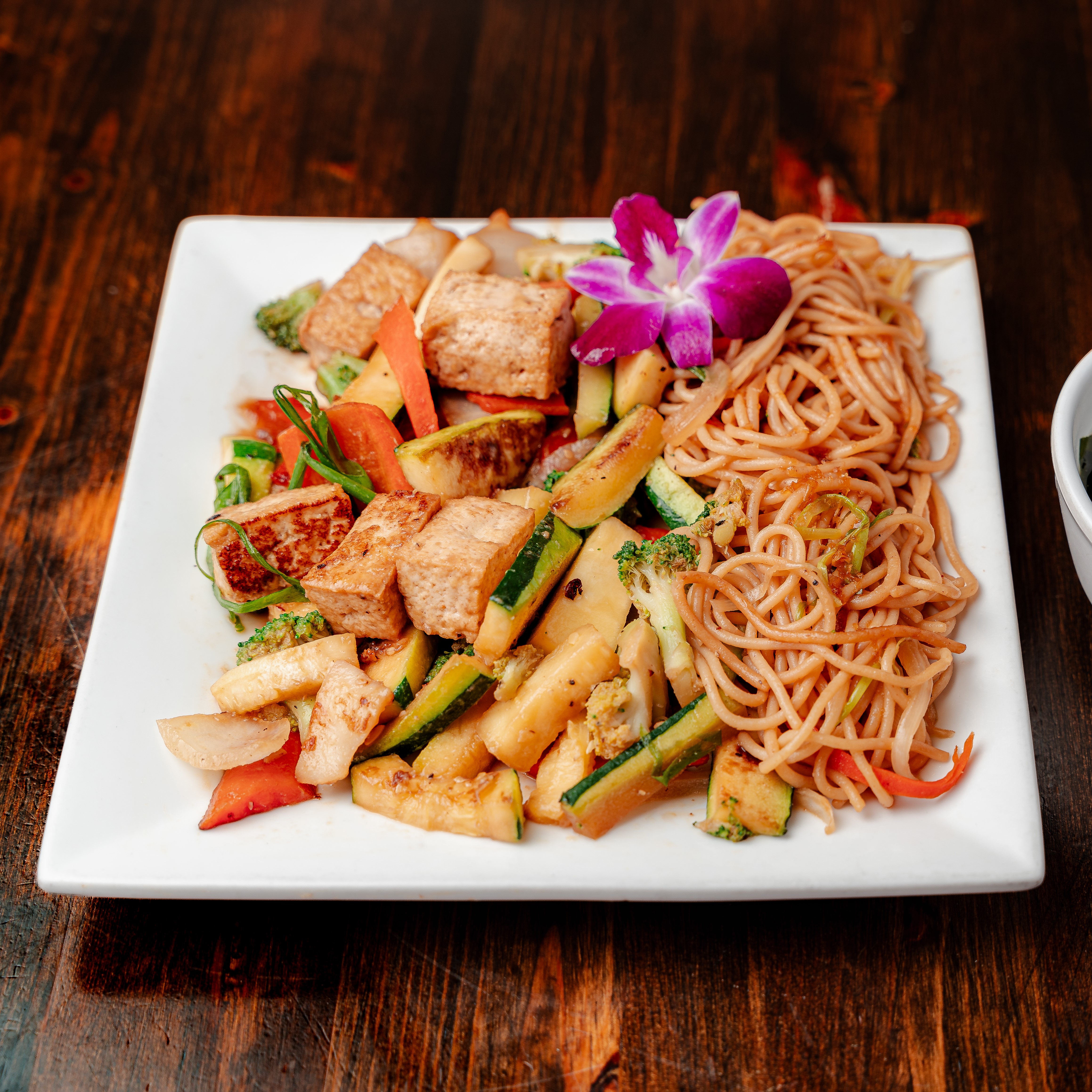 Stir-fried noodles with vegetables and your choice of protein. Add chicken, beef, or shrimp for an additional charge.