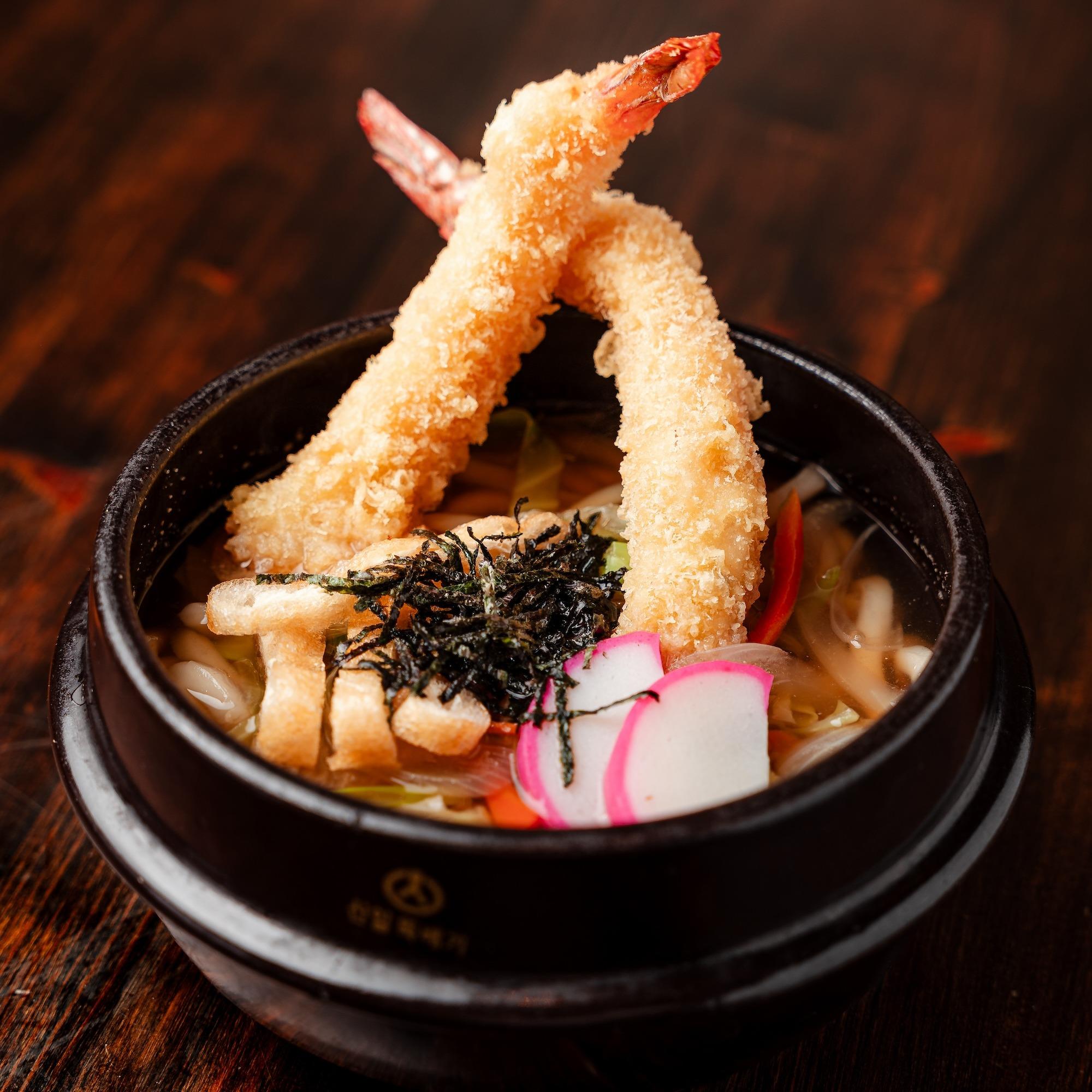 Udon, Shrimp Tempura, Onion, Carrot, Green Onion, Cabbage