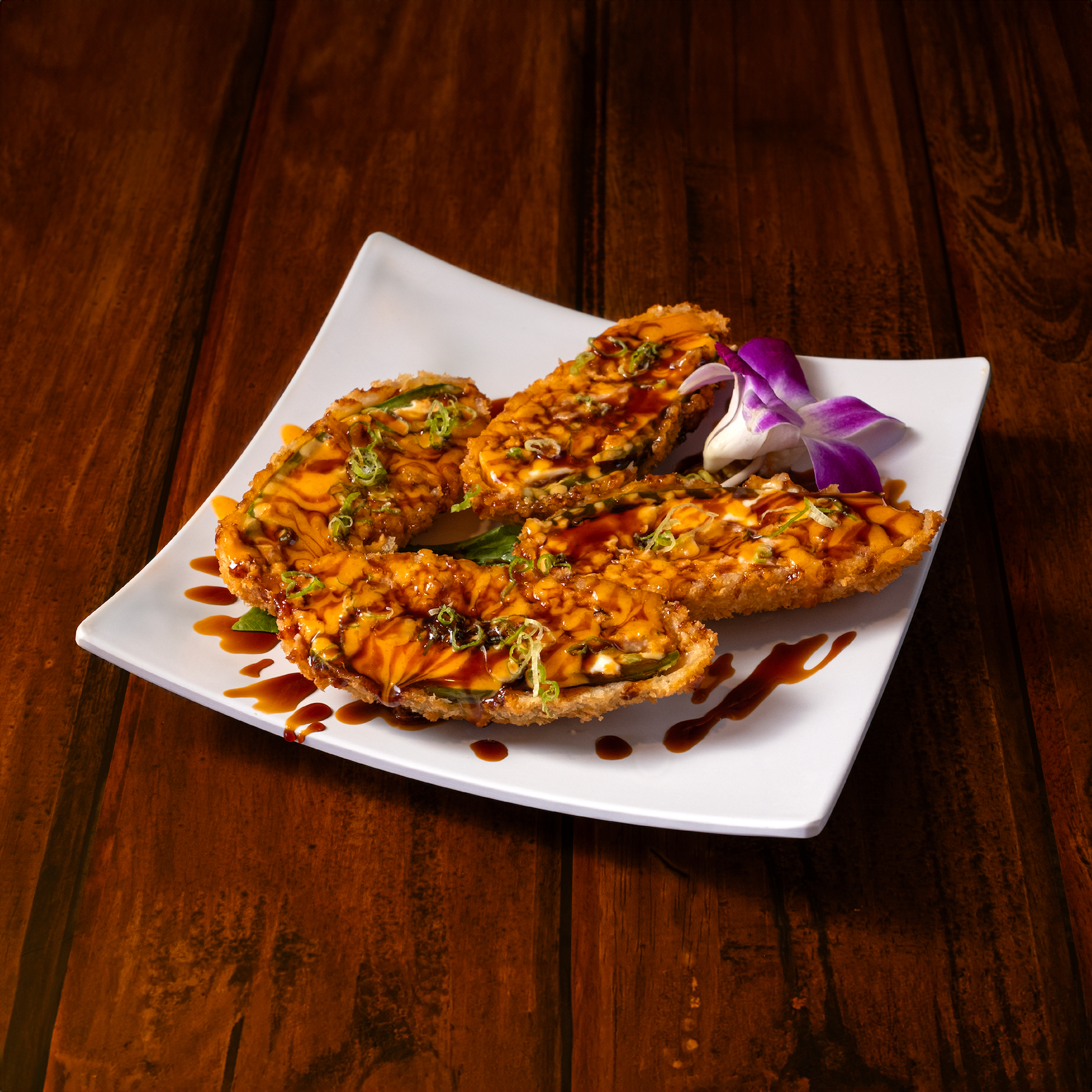 Jalapeno stuffed with Cream Cheese and Spicy Salmon, Deep Fried Spicy Mayo and Eel Sauce