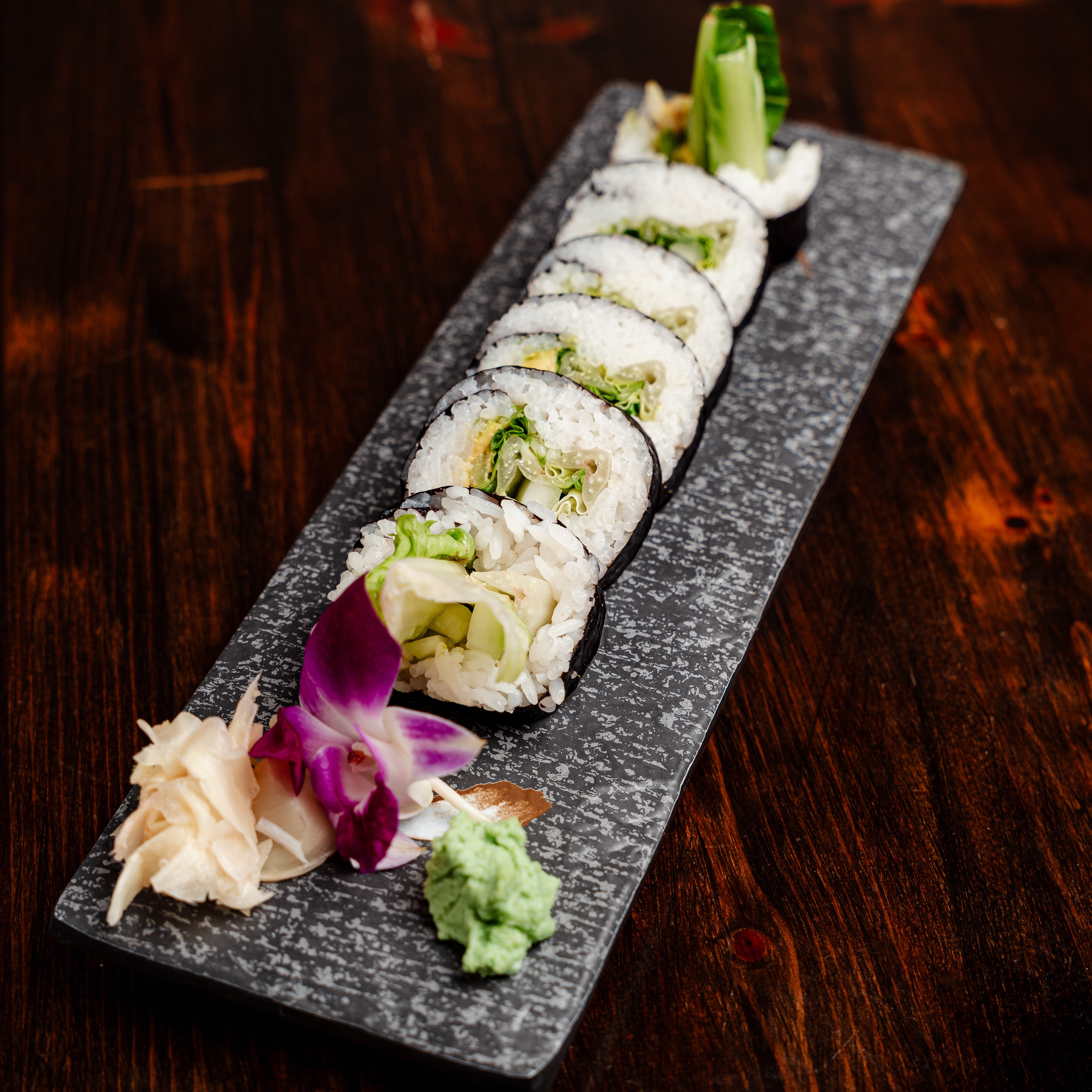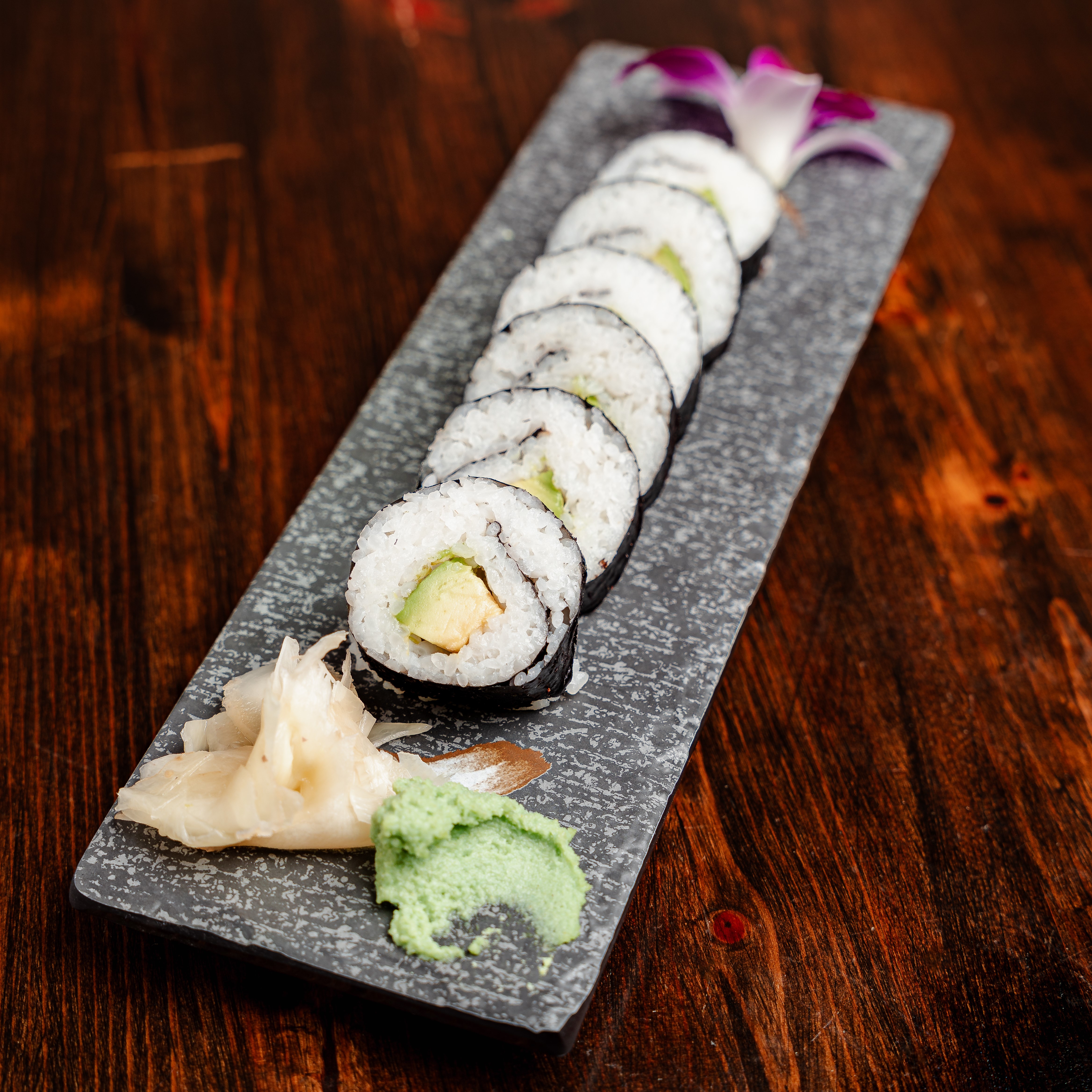 Cucumber and Unagi topped with Avocado, Eel Sauce and Sesame.